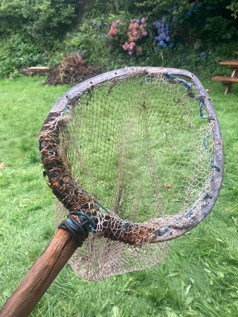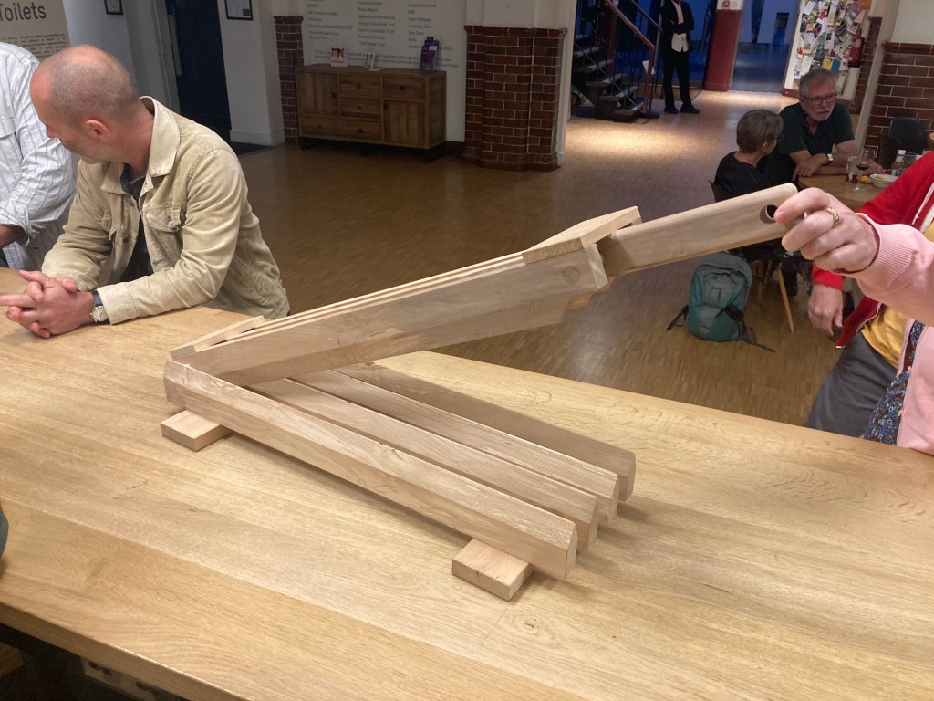 We wanted to try out the beautiful new flax break, made for me by Dylan Jones of Machynlleth. It’s from fallen Beech and is a beast – nicknamed the Flax Capacitor. Sadly when we eventually found last years retted flax, it hadn’t been kept dry enough and so is now over retted. It wasn’t dry enough to properly try breaking, and so it’s gone to the farmhouse for a week, and we’ll try it again next week. But it was breaking off easily at the root end, which was the most retted as it had stood in a stook on a damp surface. I think we’ll salvage a shorter length and the rest we can try for papermaking and casting. So, lessons learnt… keep track of your flax and make sure it’s dry and aired.