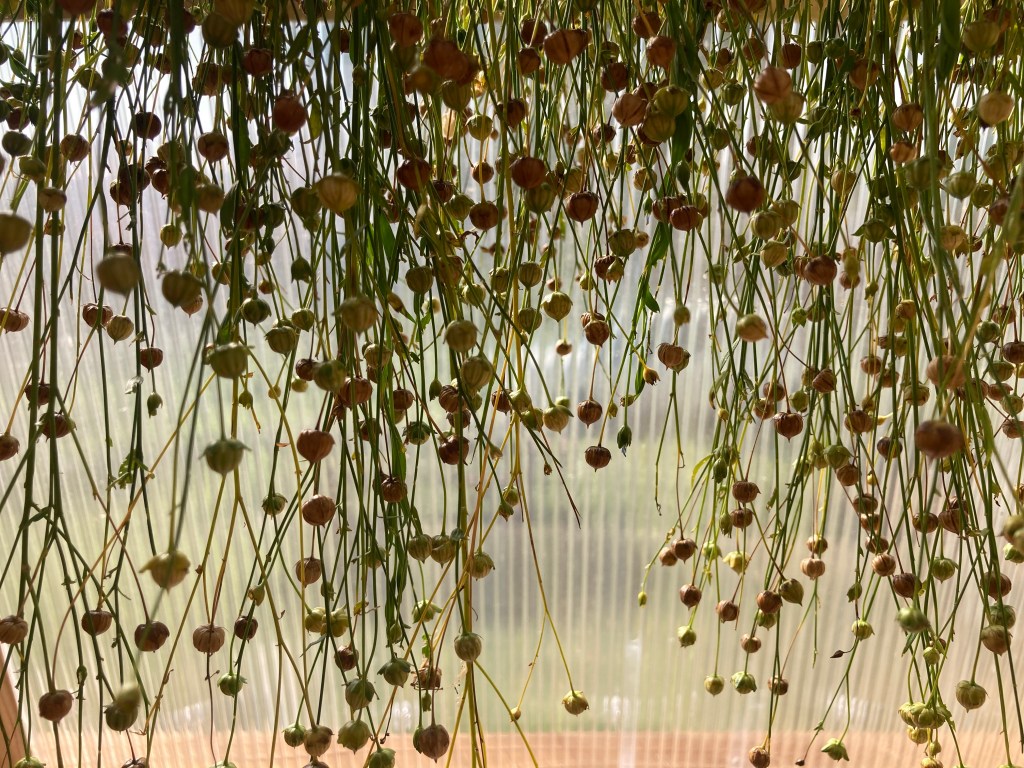 Time has passed and the flax is in the Global Gardens greenhouse for the winter.