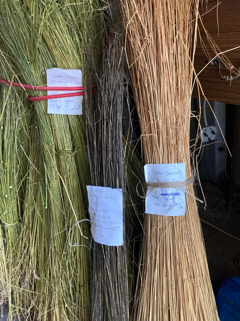 The Global Gardens grown crop is dry, with seed heads still on, hanging in the classroom. This will also be used for sharing processes next spring.
