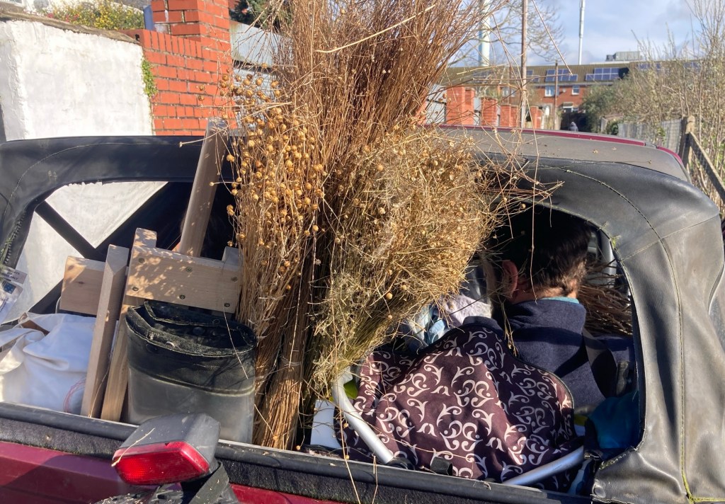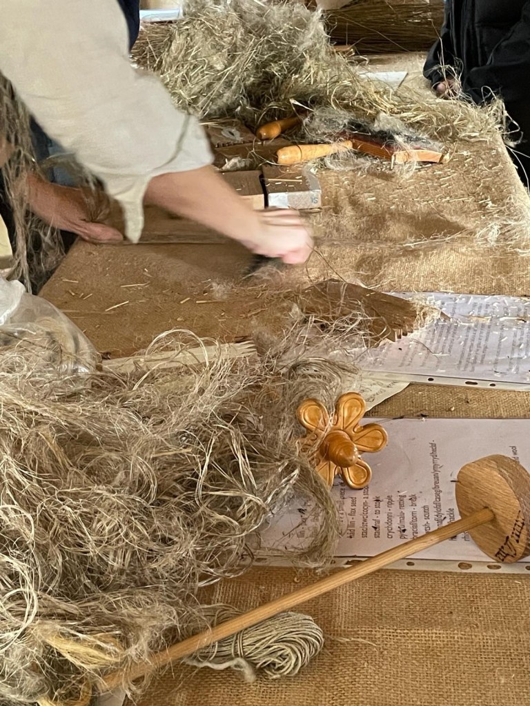 So on Easter Monday we went with all our tools, flax, linen samples and enthusiasm for this wonderful plant and its produce.