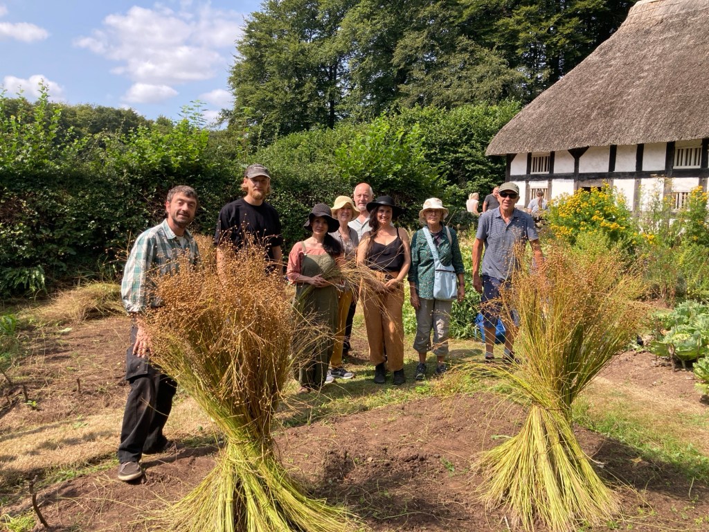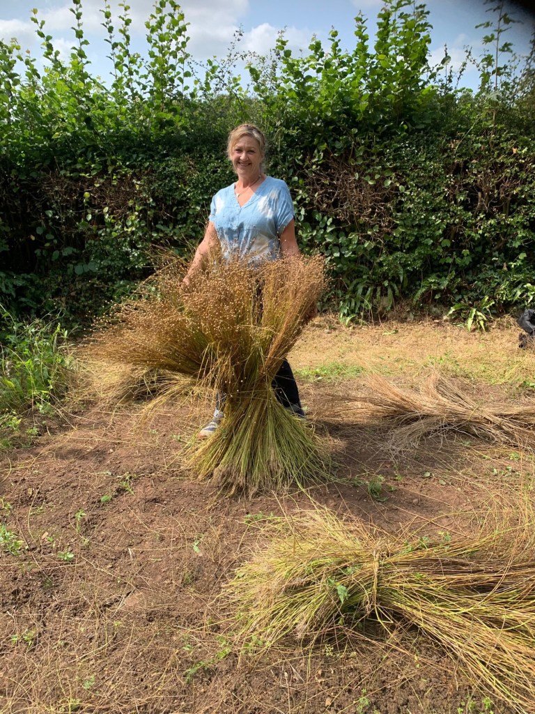 Some of the crop lodged a few weeks ago – this has lost its seed and is partially retted from lying on the ground on top of itself – but has lovely fine fibre and is still useable.