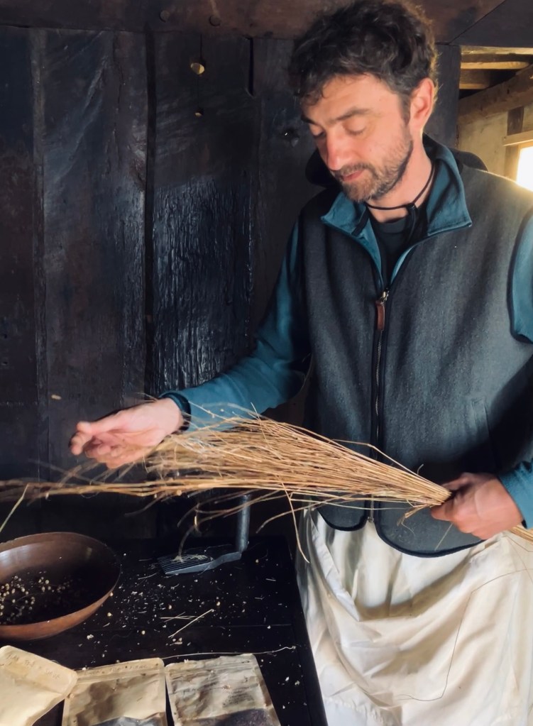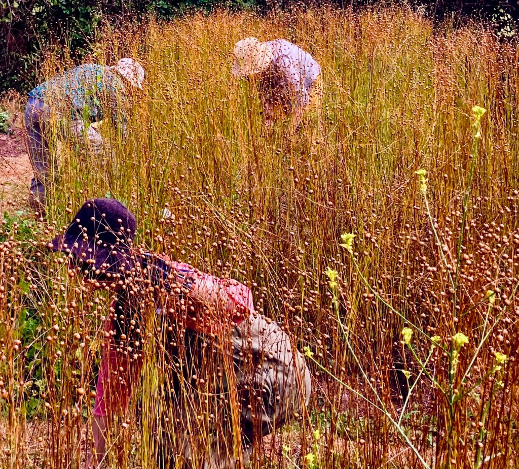 This year’s plants are tall and fine, with good seed yield too. Some is already hedge retted, some we’ll grass ret now, and some we’ll save dried, for spring/summer tank retting next year.