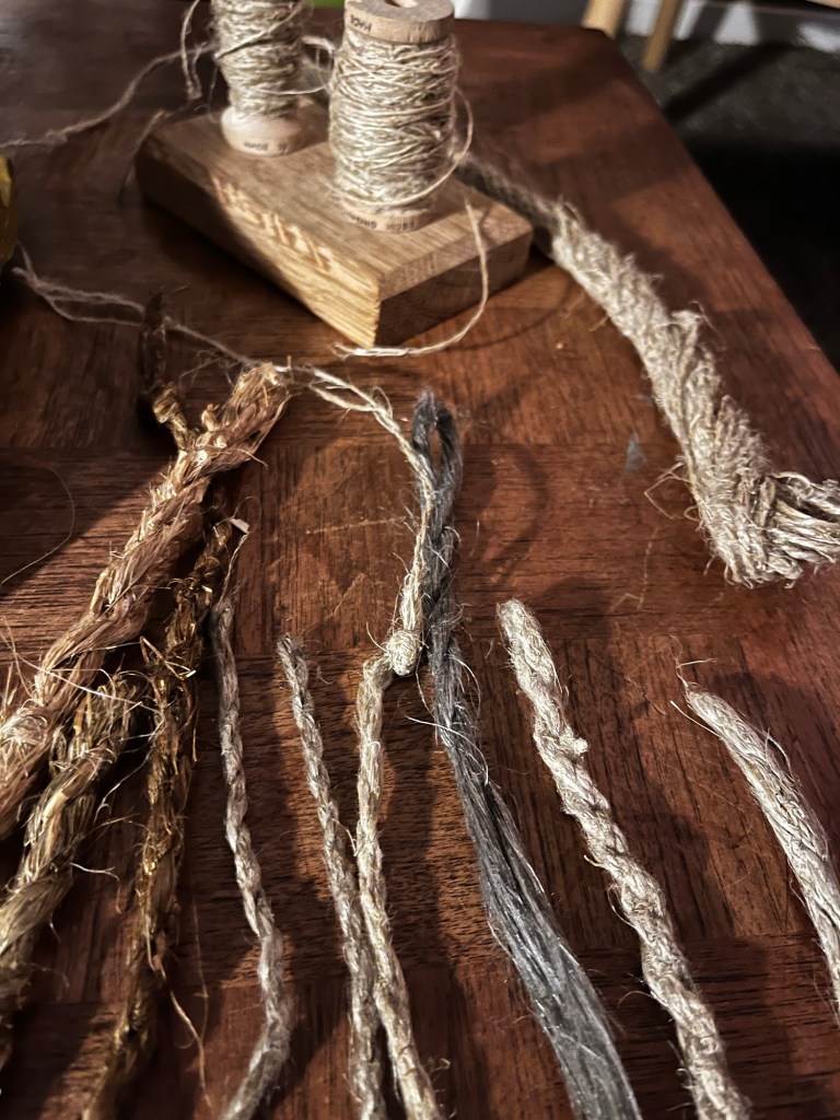From straw into gold. . Samples of our Cardiff grown and processed flax, spun at Friperie by Cat into linen yarn, to be made into some very special rope for a Welsh furniture designer.